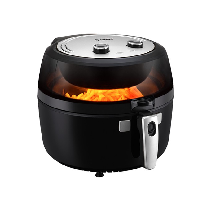 + Mặt kính cường lực trong suốt chịu nhiệt cao, người dùng có thể dễ dàng quan sát quá trình thực phẩm được chiên từ đó điều chỉnh nhiệt độ và thời gian phù hợp.