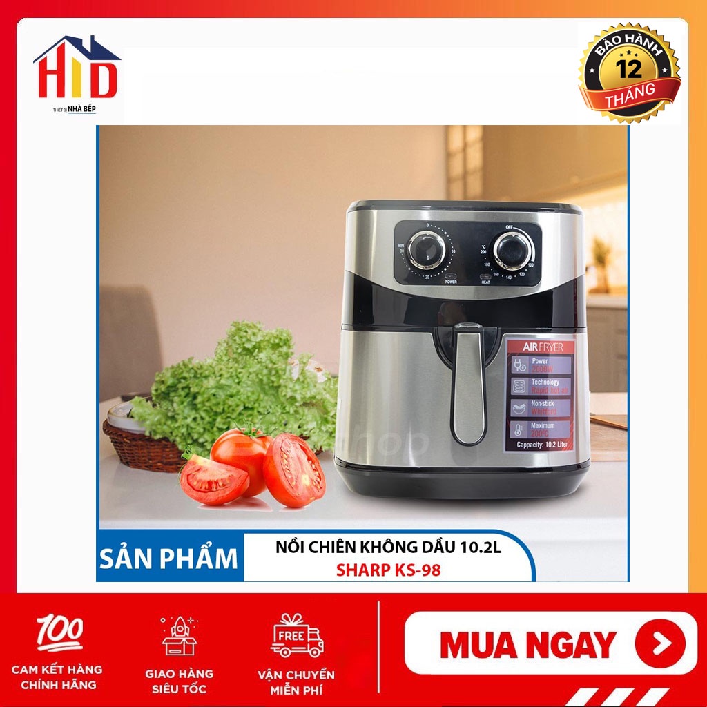 Nồi chiên Không dầu Sharp 10.2L KS-98, Xuất xứ Thái Lan, Dung tích lớn, CS lên đến 2000W, Chiên nhanh tiết kiệm điện