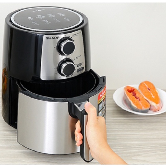 - Nồi chiên không dầu Sharp thiết kế hiện đại, màu đen tối giản, tăng vẻ sang trọng cho không gian bếp