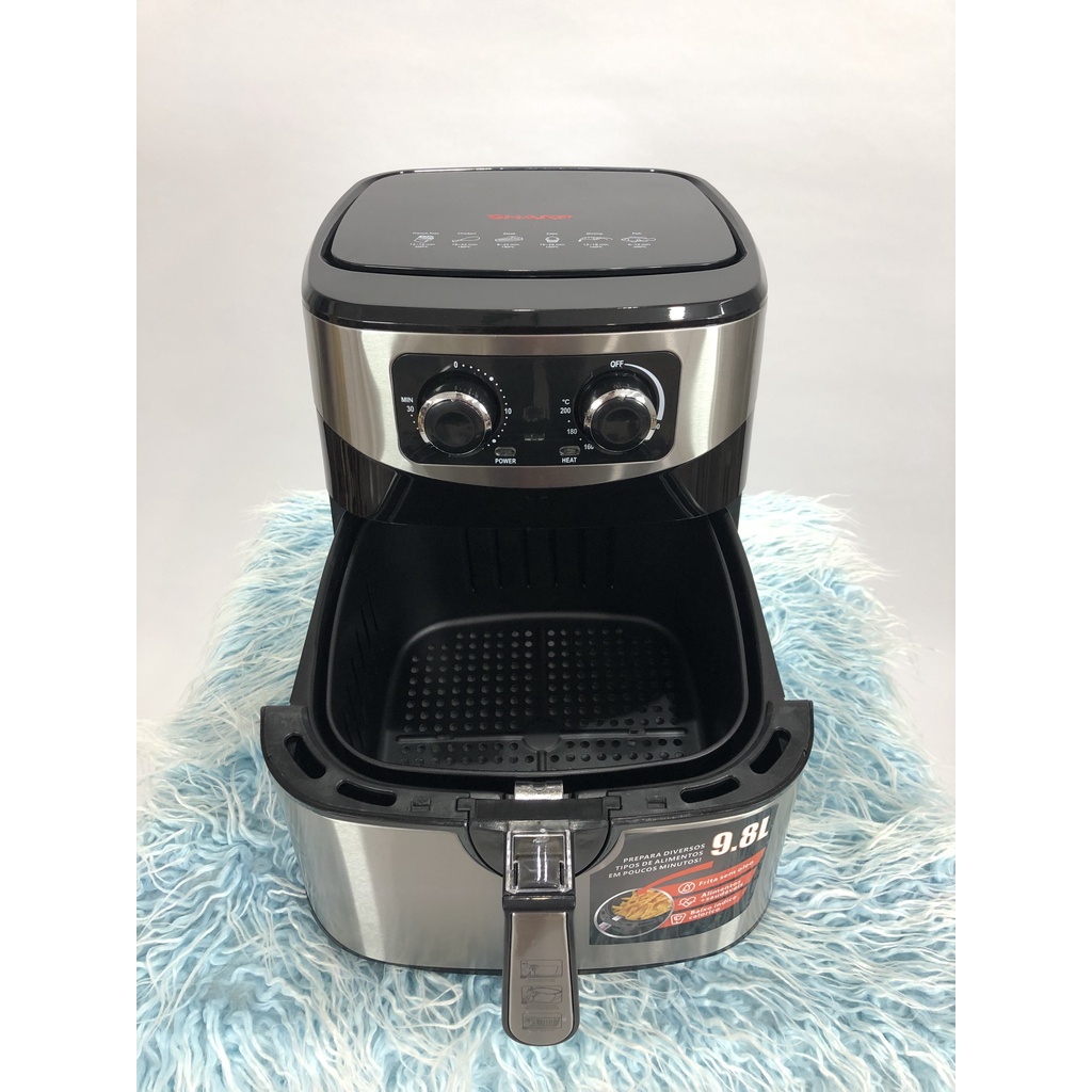 Nồi chiên không dầu Sharp có dung tích 9.8L, nên rất phù hợp để bạn chiên thực phẩm ăn trong ngày cho gia đình khoảng 4-8 thành viên. Với dung tích này, bạn có thể chế biến các món như: Chiên nguyên con gà lớn, khoai tây/ khoai lang chiên,... mà không phải chiên nhiều lần.