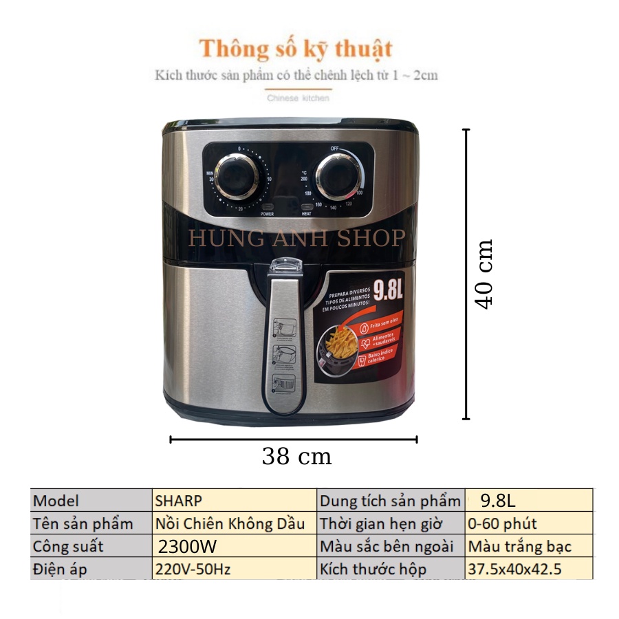 Nồi Chiên Không Dầu Sharp 9.8L - Dung Tích Siêu Lớn, Kiểu Dáng Hiện Đại, Chắc Chắn, Chiên Không Cần Lật, BH 12 ThángĐẶC ĐIỂM NỔI BẬT: