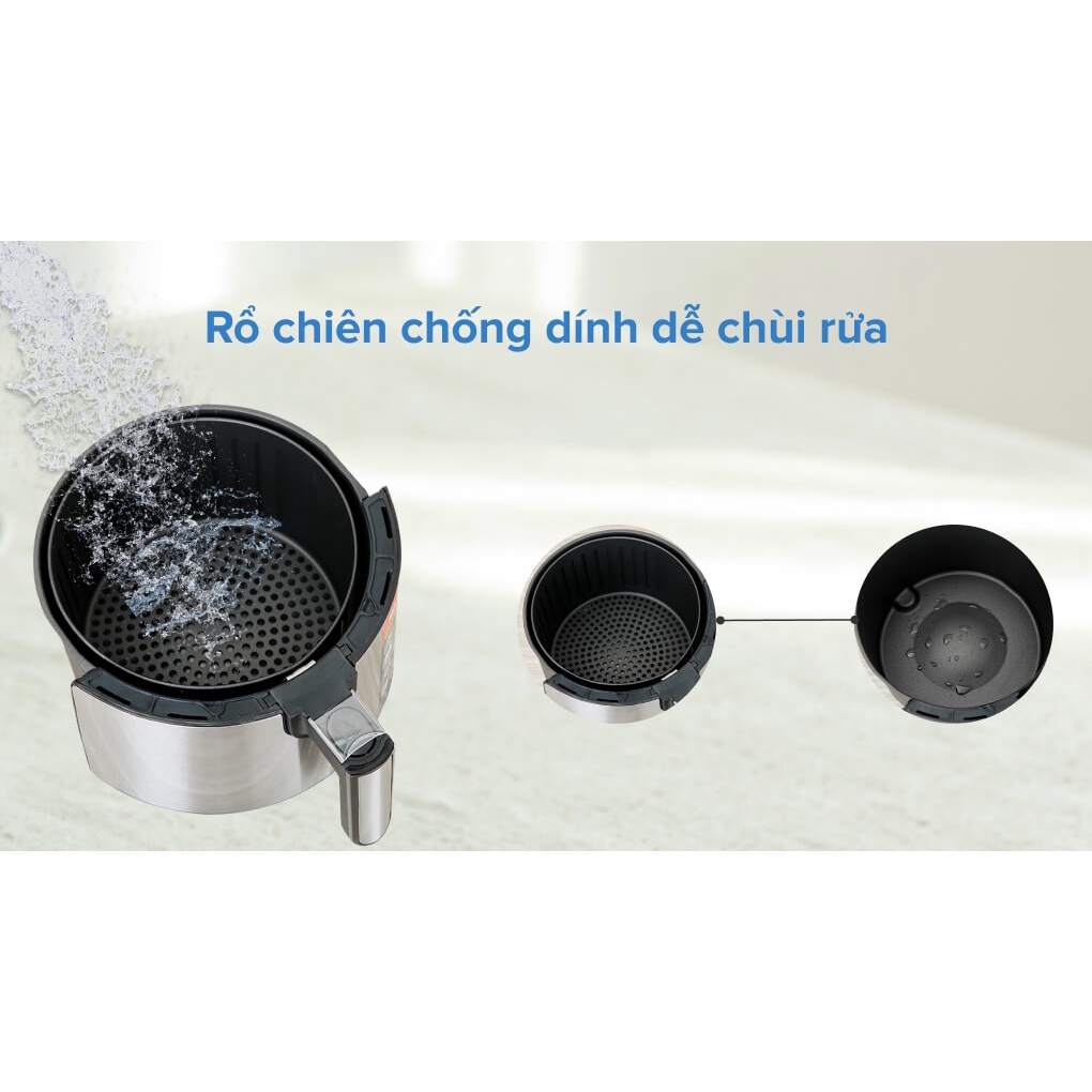 Nồi có dung tích sử dụng 3.5 lít, nồi chiên không dầu có thể chiên được khoảng 1.2 kg thức ăn cùng lúc. Ngoài khoai tây, thiết bị còn chế biến được thịt, cá, hải sản, nướng bánh, cho bạn chuẩn bị bữa cơm gia đình phong phú, tiện lợi.
