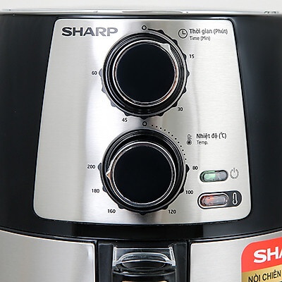 Nồi chiên không dầu Sharp thiết kế 2 núm xoay, 1 núm nằm ở mặt trước là núm điều chỉnh chức năng hẹn giờ, thời gian chọn tối đa 60 phút, 1 núm nằm ở trên đầu sản phẩm là núm chỉnh nhiệt độ từ 80 - 200 độ C, tùy theo nhu cầu món ăn mà bạn hẹn giờ nấu và mức nhiệt độ phù hợp để món ăn chín ngon, không bị cháy khét.