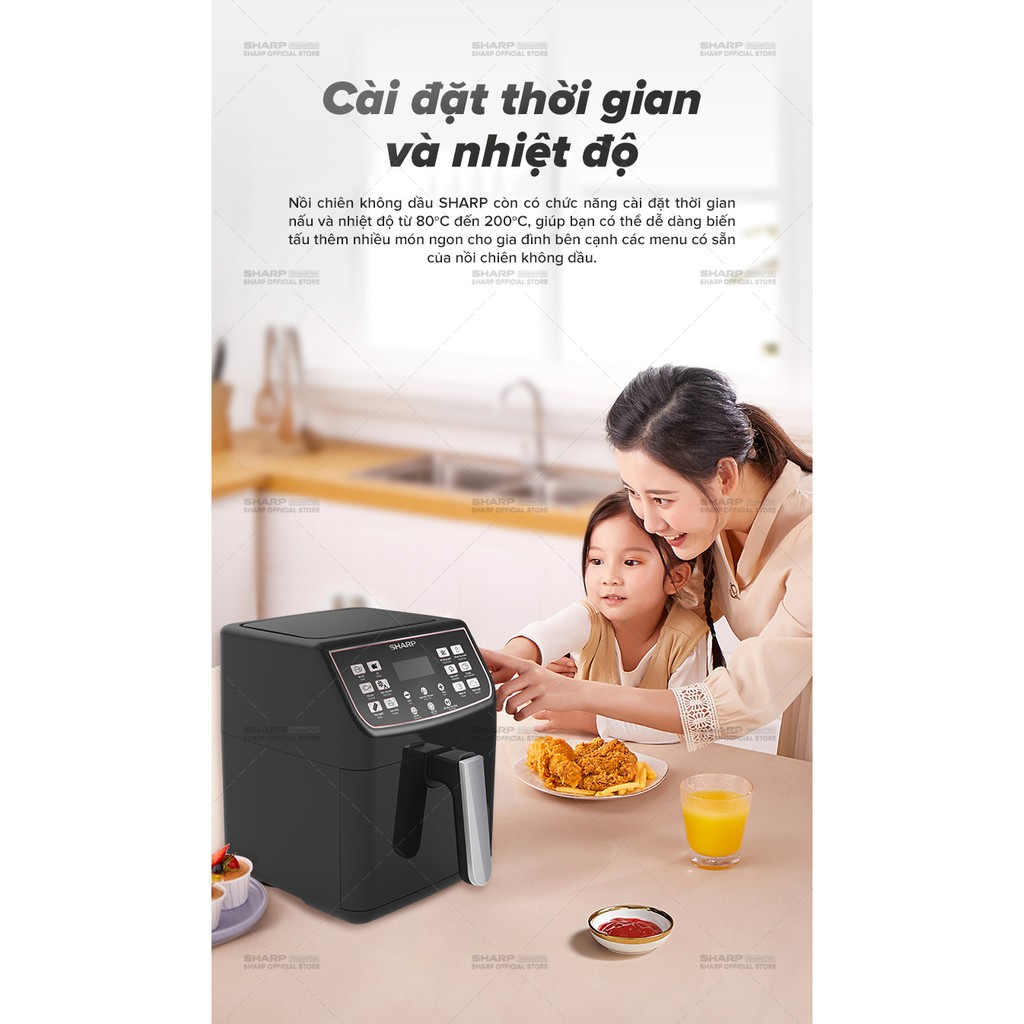 Thiết Bị Điện Gia Dụng > Đồ gia dụng nhà bếp > Nồi chiên không dầu || [Mã 273ELHA100K0 hoàn 7% đơn 500K] Nồi Chiên Không Dầu Sharp KF-AF55EV-BK Chống Dính 5.5LCòn hàng