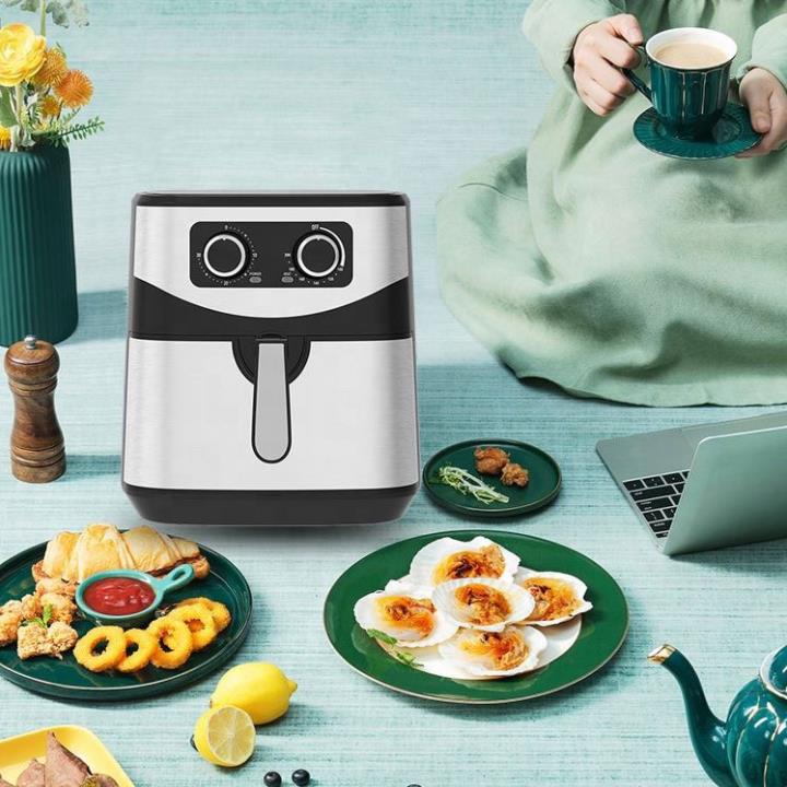 - Sử dụng công nghệ tiên tiến nhất hiện nay : Air Fryer làm nóng luồng không khí tuần hoàn 360 độ quanh thực phẩm làm chín thực phẩm từ từ, chín đều hoàn toàn mọi mặt