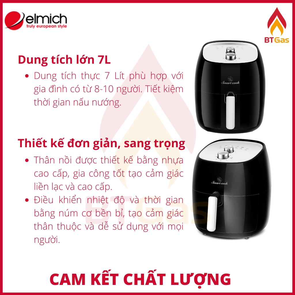 ✔️ Sản phẩm nồi chiên không dầu cơ Smartcook được sản xuất và giám sát bởi Tập đoàn Elmich Cộng Hòa Séc, đạt tiêu chuẩn Chất lượng Châu Âu và an toàn cho sức khỏe các gia đình Việt.