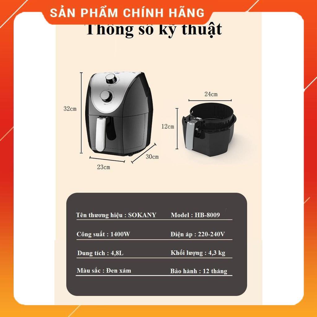 [Mã 44ELSALE2 giảm 7% đơn 300K] Nồi Chiên Không Dầu SOKANY 4,8L Công Suất Mạnh Mẽ giảm tối đa dầu mỡ