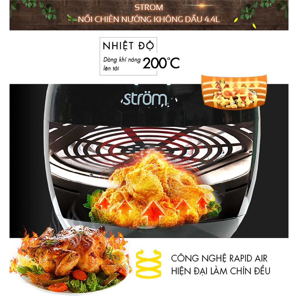 Giới thiệu Nồi chiên không dầu Strom MK-41ST - Dung tích 4.4L - Công suất 1400W - Công nghệ Rapid Air giảm 80% lượng dầu mỡ