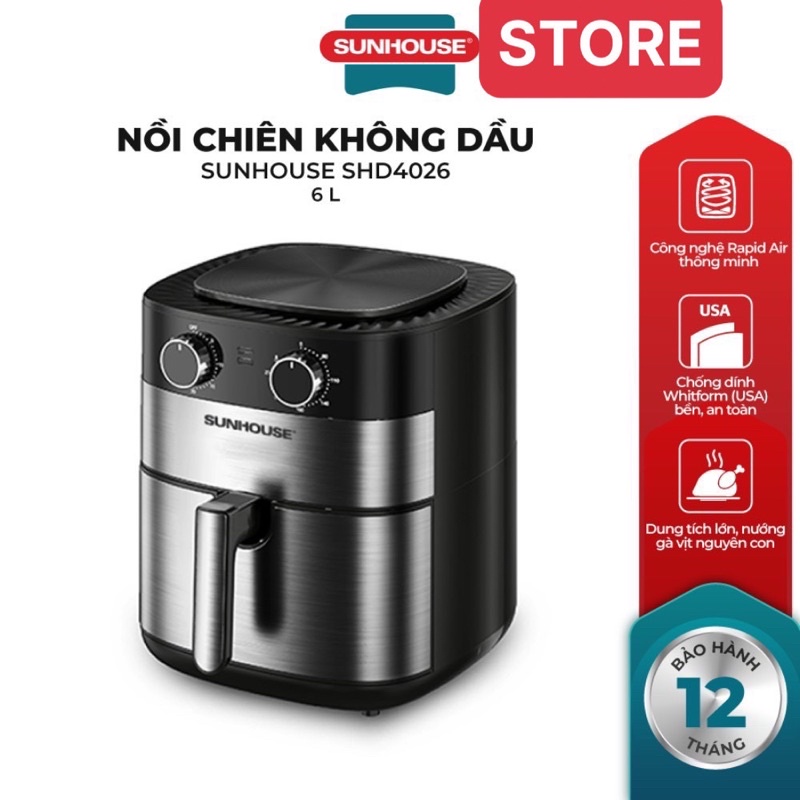 Thiết Bị Điện Gia Dụng > Đồ gia dụng nhà bếp > Nồi chiên không dầu || Nồi chiên không dầu Sunhouse 6 lít SHD4026 [model mới 22.7.2021] - Bảo hành tại hãng 12 tháng toàn quốcCòn hàng
