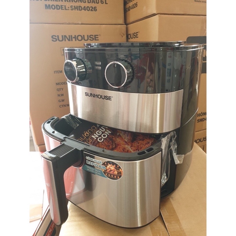 Giới thiệu Nồi chiên không dầu Sunhouse 6 lít SHD4026 dễ dàng vệ sinh và an toàn cho sức khỏe - BH tại hãng 12 tháng toàn quốc