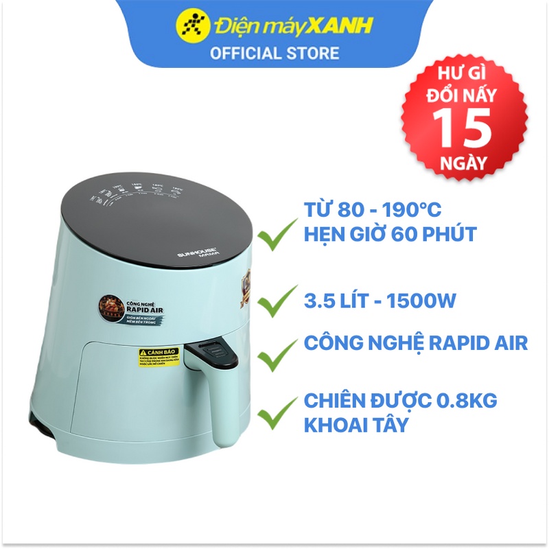 [Mã ELHADEV giảm 4% đơn 300K] Nồi chiên không dầu Sunhouse SHD4085G 3.5 lít Công suất 1500W BH 12 tháng, Chính hãng