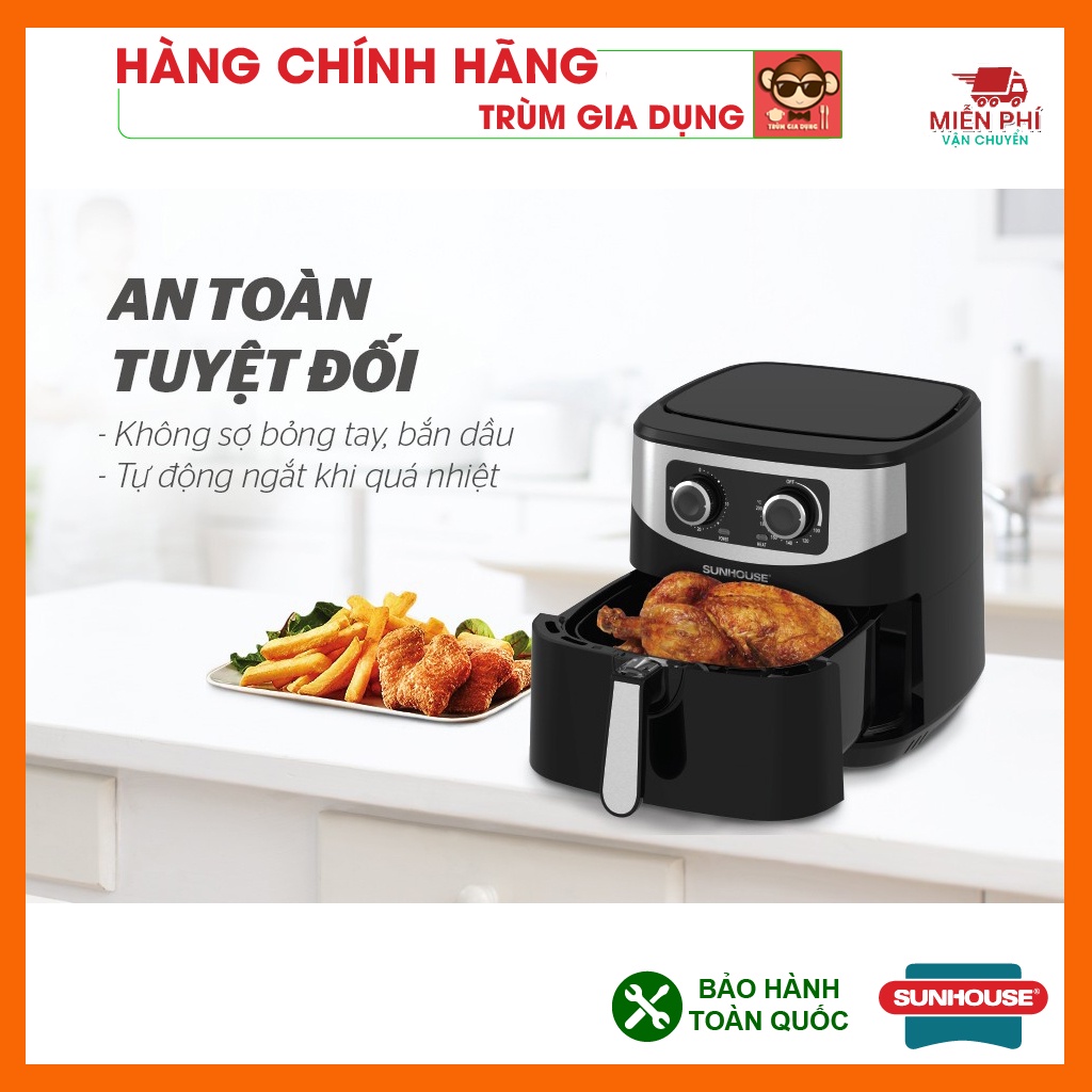 Thiết Bị Điện Gia Dụng > Đồ gia dụng nhà bếp > Nồi chiên không dầu || Nồi chiên không dầu Sunhouse SHD4062 6 Lít siêu to, bảo hành 1 năm toàn quốc bởi Trùm Gia DụngCòn hàng