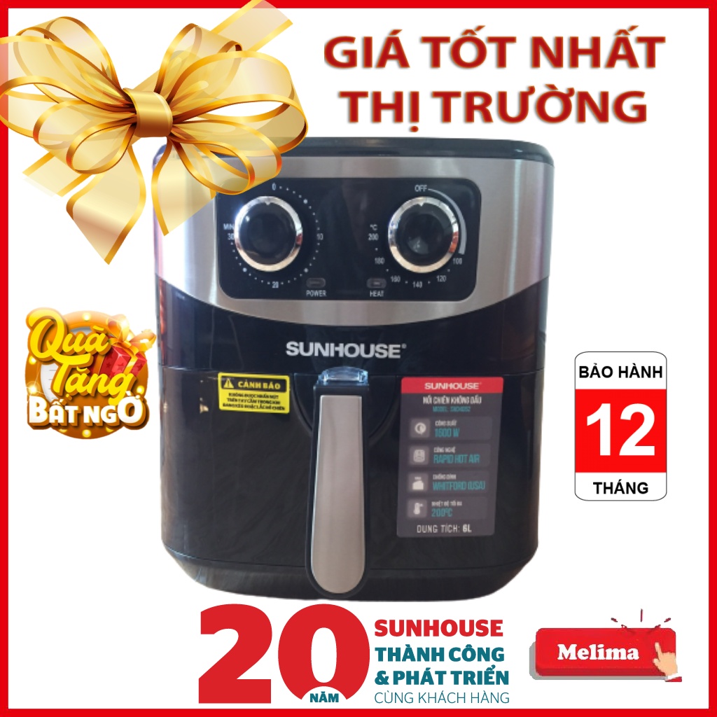 Nồi chiên Không dầu Sunhouse 6L mã SHD4026 và SHD4062, Giảm đến 80% lượng chất béo, bảo vệ sức khỏe, An toàn khi sử dụng✅ Cam kết từ Melima