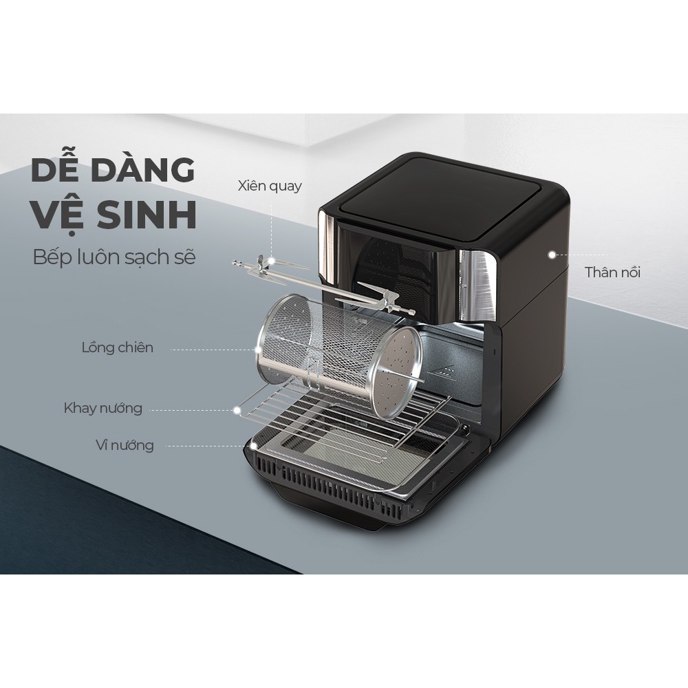 ĐẶC ĐIỂM NỔI BẬT:Dung tích khủng 15L, nướng gà nguyên con, không cần đảo, lật