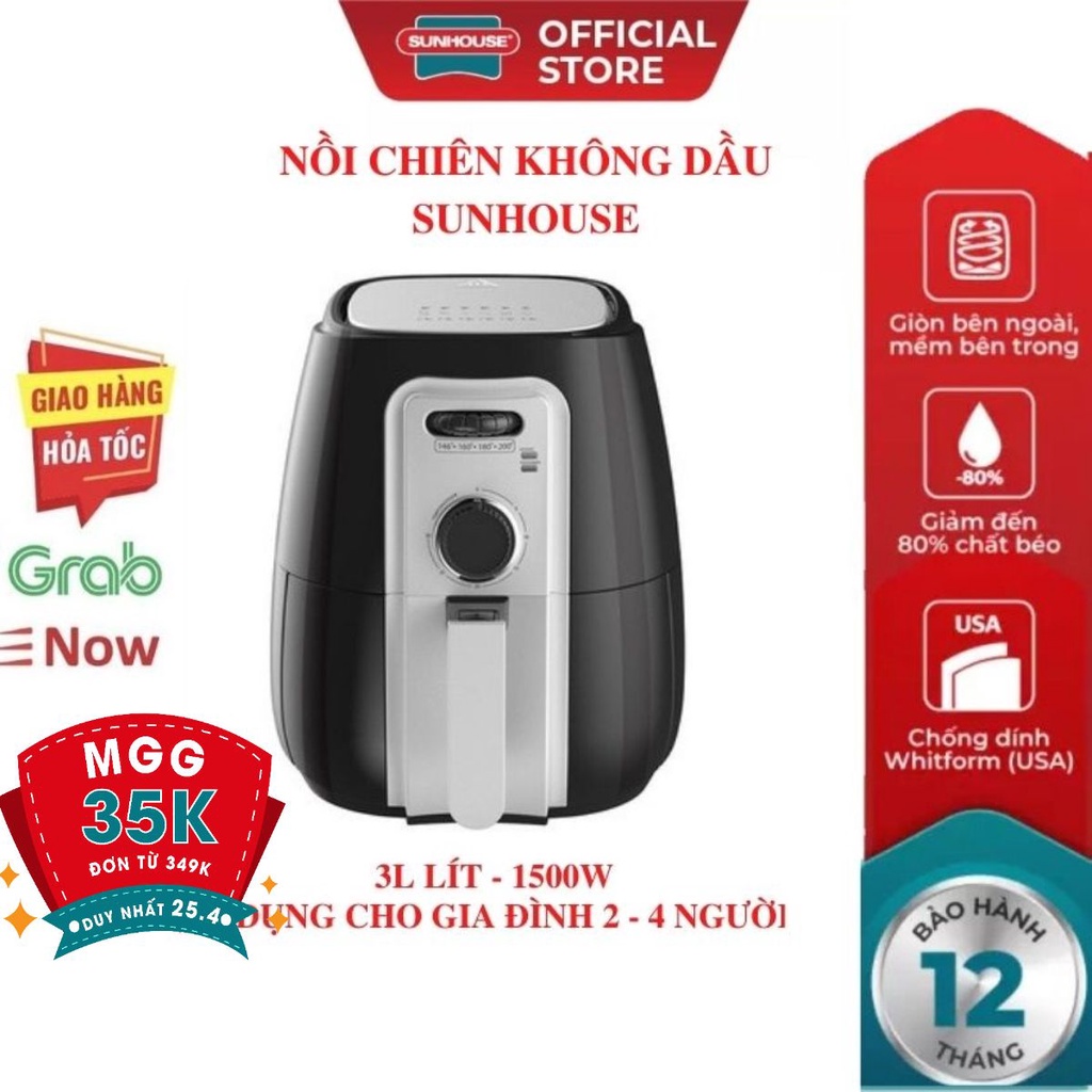 Thiết Bị Điện Gia Dụng > Đồ gia dụng nhà bếp > Nồi chiên không dầu || Nồi chiên không dầu SUNHOUSE 3L giảm béo chiên nướng dễ dàng tiết kiệm thời gian an toàn sử dungCòn hàng