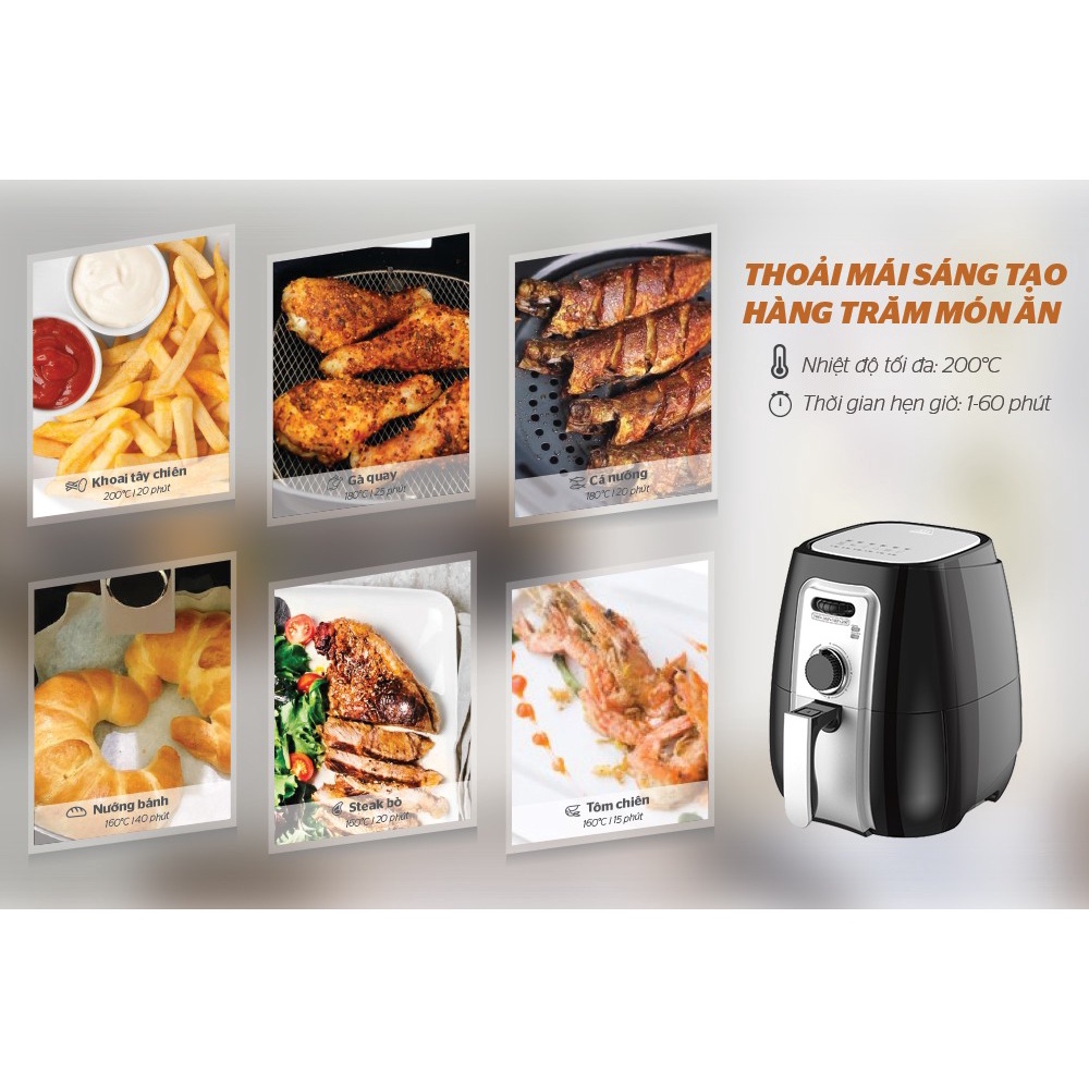 Nồi chiên không dầu SUNHOUSE SHD4025B-2022 3L giảm béo chiên nướng dễ dàng tiết kiệm thời gian an toàn sử dung