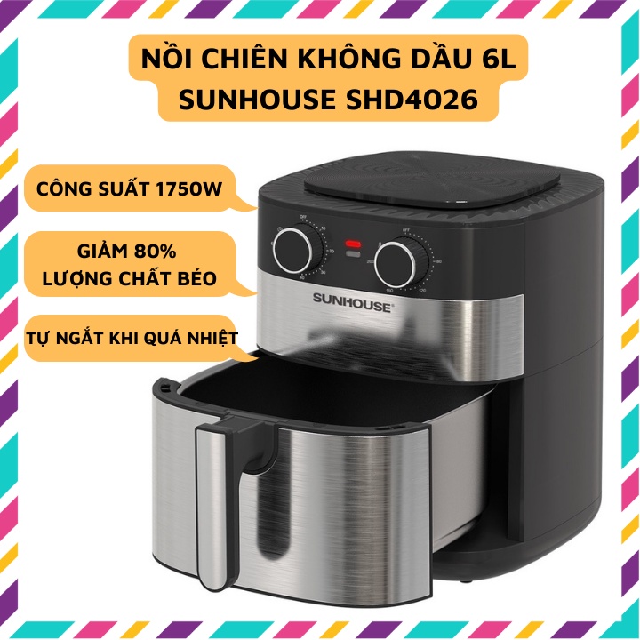 Thiết Bị Điện Gia Dụng > Đồ gia dụng nhà bếp > Nồi chiên không dầu || [Mã 273ELHA100K0 hoàn 7% đơn 500K] Nồi chiên không dầu Sunhouse 6L SHD4026Còn hàng