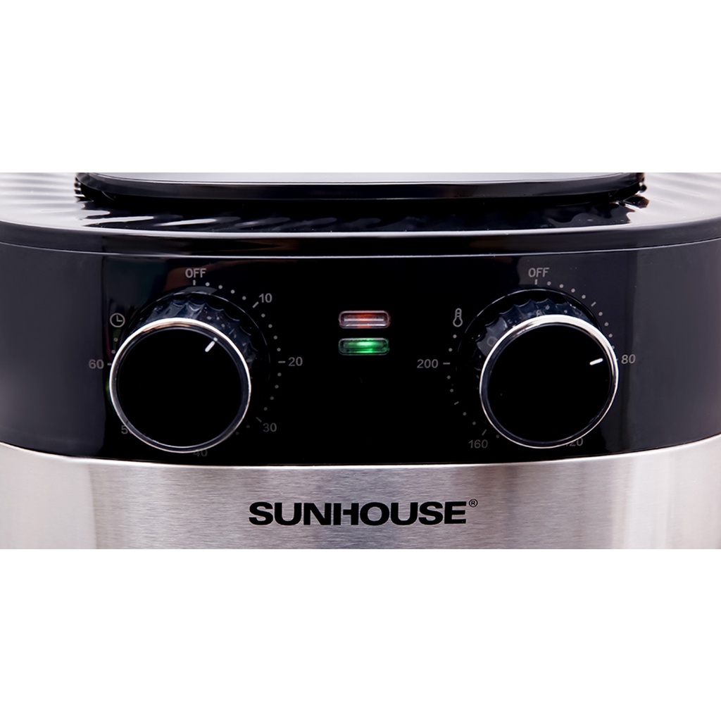 - Nồi chiên không dầu SUNHOUSE có chế độ tự động ngắt khi quá tải nhiệt, đảm bảo an toàn tối đa cho người sử dụng (khi quên hay bận rộn công việc khác). Chức năng này còn giúp làm tăng tuổi thọ sản phẩm và phòng chống cháy nổ