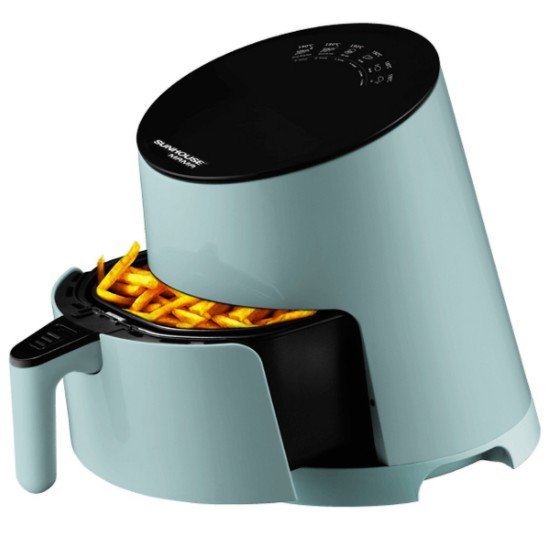 Thiết kế nhỏ gọn, tiện lợiNồi Chiên Không Dầu Sunhouse Mama SHD4085 có kiểu dáng độc đáo, nhỏ gọn. Sản phẩm có màu xanh ngọc sang trọng, lạ mắt, rất phù hợp với các không gian bếp hiện đại. Dung tích 3.5L cỡ vừa, phù hợp cho gia đình 2 – 4 người.