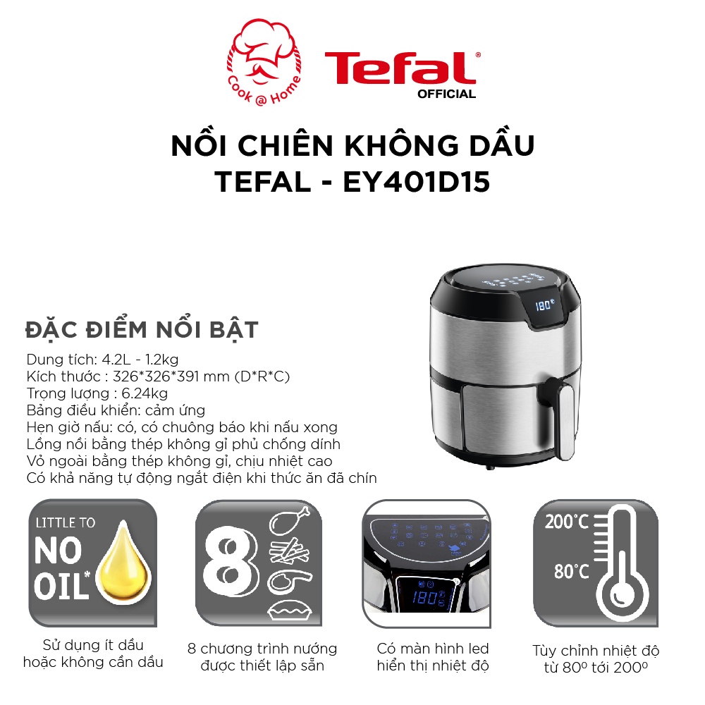 Thiết Bị Điện Gia Dụng > Đồ gia dụng nhà bếp > Nồi chiên không dầu || Nồi chiên không dầu Tefal EasyFry Deluxe EY401D15 - 4.2L - 1500WCòn hàng