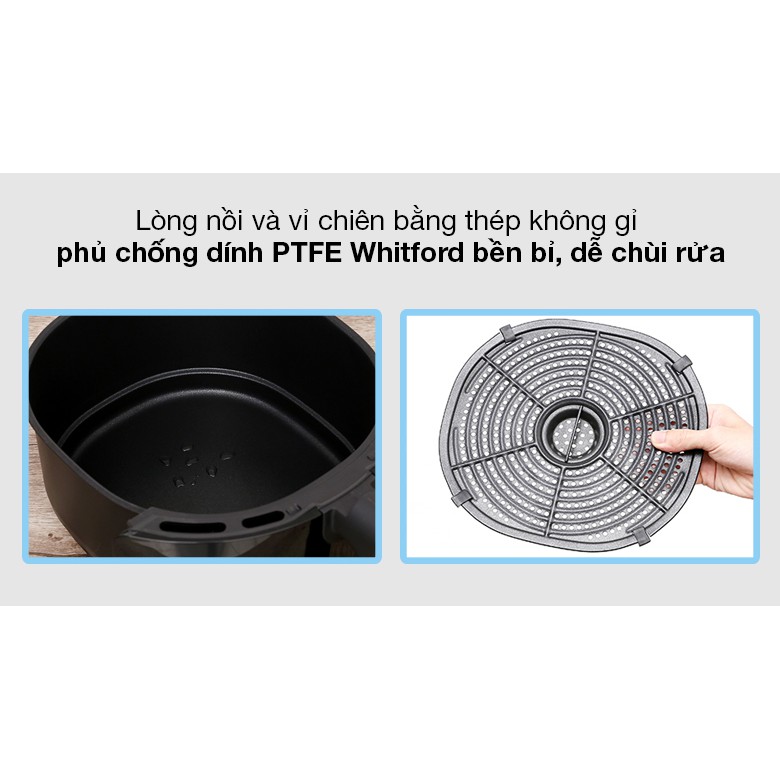 Nồi có dung tích lên đến 5.6L phù hợp để bạn chiên thực phẩm ăn trong ngày cho gia đình khoảng 3 - 5 người. Với dung tích này, bạn có thể chế biến các món như: Cánh gà chiên, đùi gà chiên, khoai tây/ khoai lang chiên,...