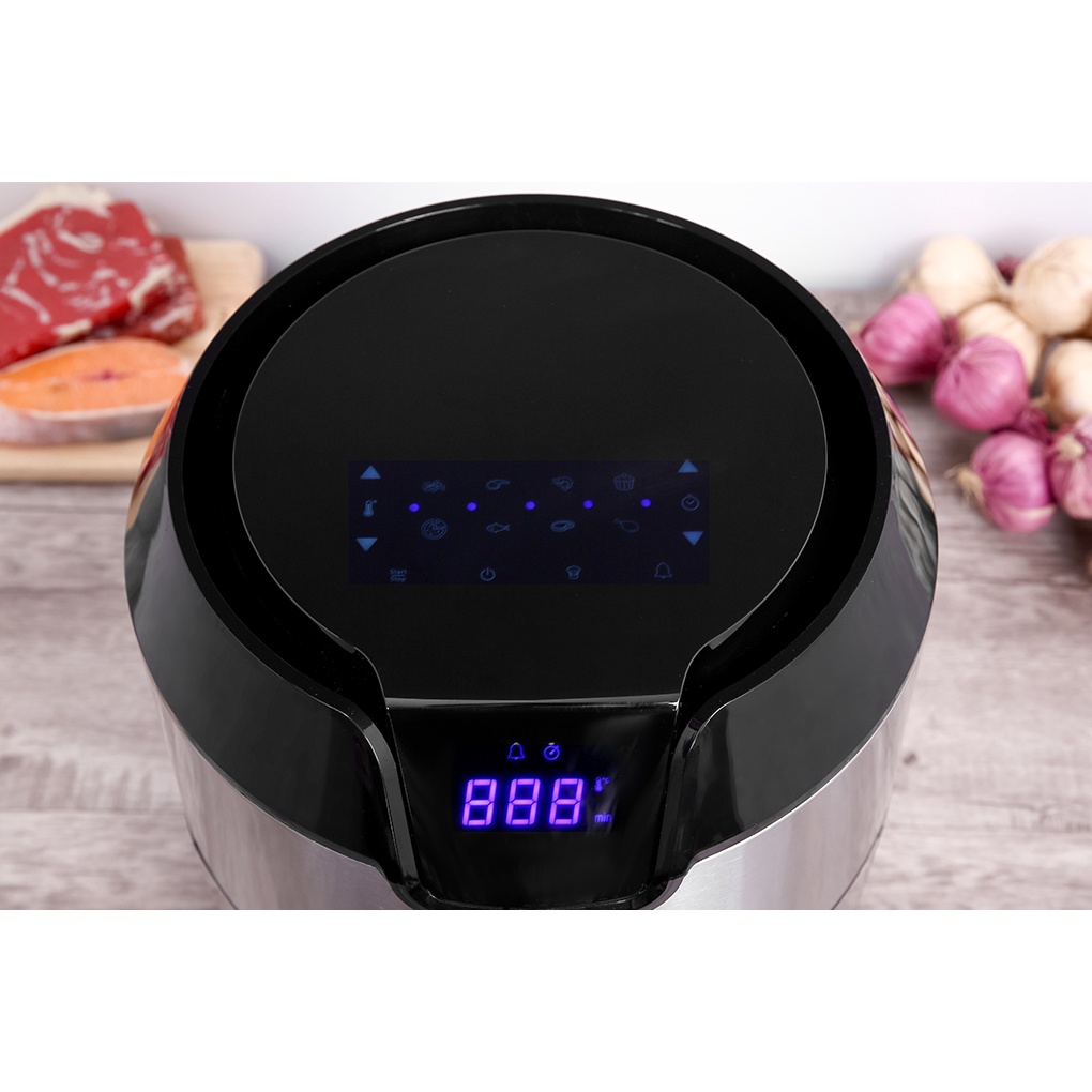 Nồi chiên không dầu có 8 thực đơn được cài đặt sẵn hỗ trợ nấu nướng dễ dàng hơn. Gồm: khoai tây chiên, bít tết, tôm, bánh cupcake, pizza, cá, sườn, đùi gà.
