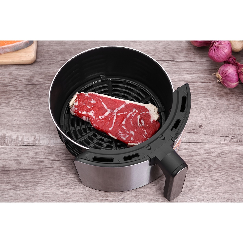 Lòng nồi và vỉ chiên bằng thép không gỉ phủ chống dính, an toàn sức khỏe, bền bỉ, khó bong tróc, dễ chùi rửa