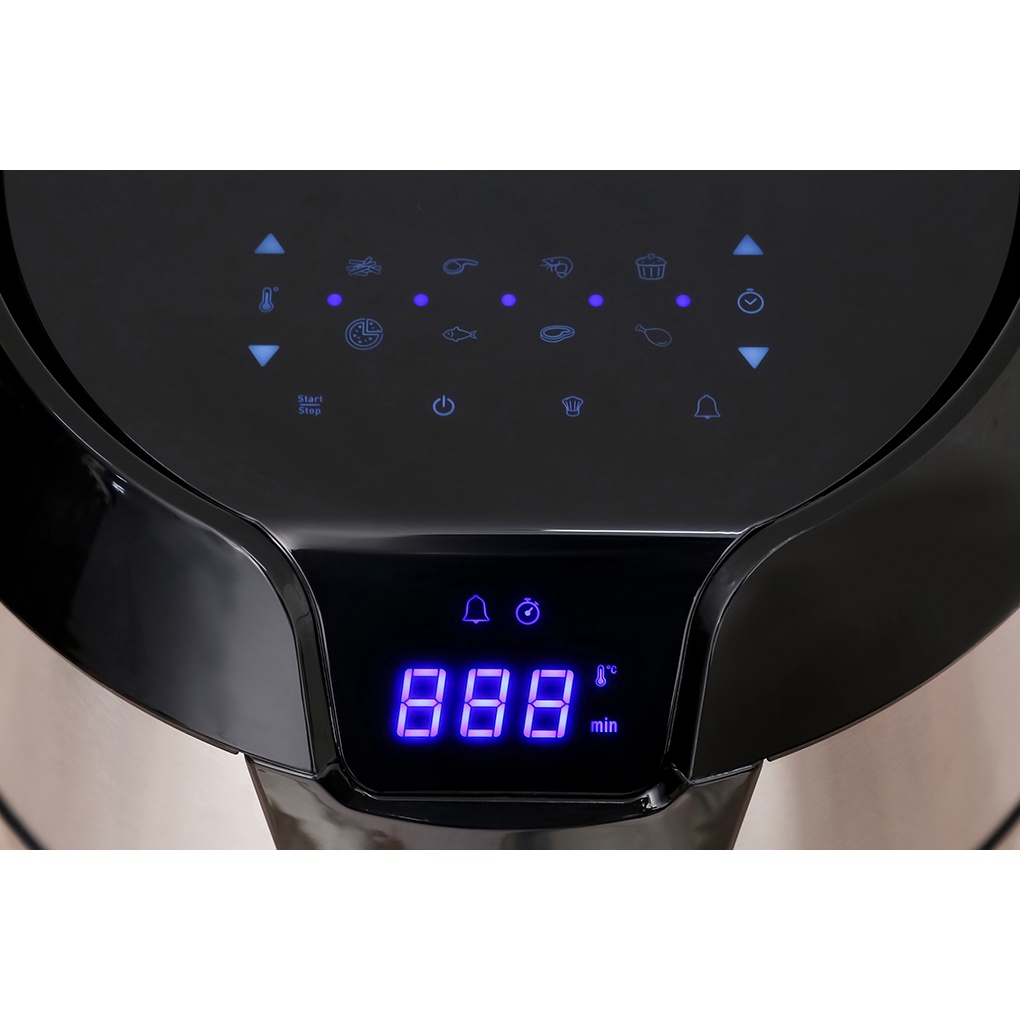 Nồi chiên không dầu cho phép chuẩn bị món ăn đa dạng cho thực đơn hằng ngày của gia đình. Bảng điều khiển cảm ứng có màn hình hiển thị rõ nét dễ dàng tùy chỉnh nhiệt độ 80 - 200 °C, hẹn giờ 0 - 60 phút. Hơn nữa, còn có chuông báo trong quá trình nấu giúp bạn theo dõi quá trình nấu nướng tiện lợi hơn