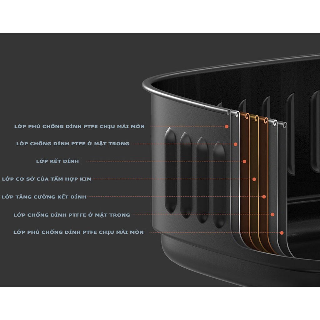 Về kích thước, nồi chiên không dầu Mijia có kích thước nhỏ gọn 335 x 252 x 304mm, được gia công từ vật liệu hợp kim. Phần nồi chiên được cấu tạo từ 7 lớp, trong đó bao gồm 2 lớp chống dính PTFE đảm bảo an toàn thực phẩm. Nồi có dung tích 3.5L có thể đáp ứng nhu cầu sử dụng của 1 đến 5 người.