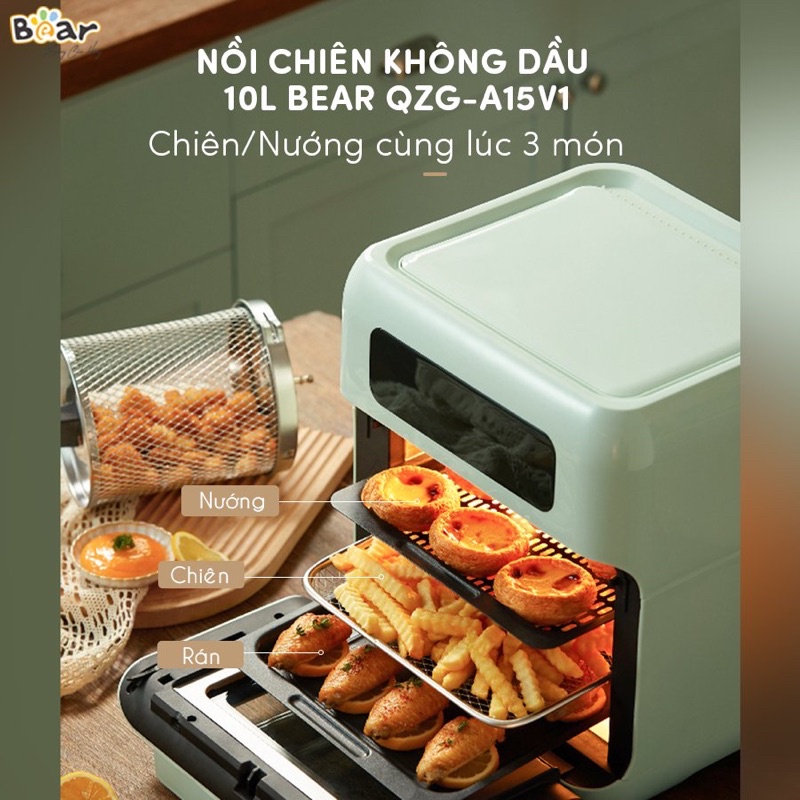 [Mã ELHADEV giảm 4% đơn 300K] NỒI CHIÊN KHÔNG DẦU TÍCH HỢP NƯỚNG 2 in 1 BEAR 10L/ HÀNG CHÍNH HÃNG-BH 18 tháng