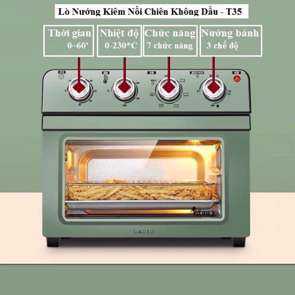 Lò nướng UKOEO T35 kiêm nồi chiên không dầu dung tích lớn 20 Lít. Lò nướng UKOEO UKOEO T35 nhiệt đều. Mua 1 được 2: vừa lò nướng, vừa nồi chiên không dầu.