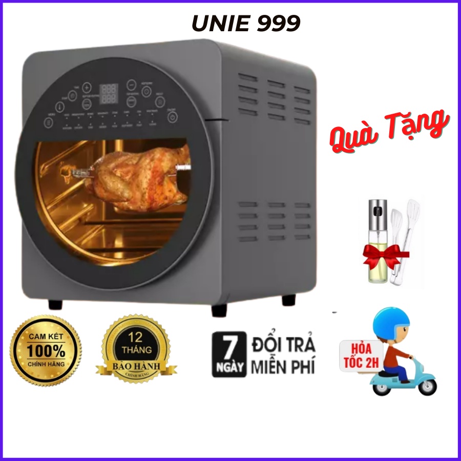 Nồi chiên không dầu Unie 999, bếp chiên không dầu 15L, nồi chiên gà nguyên con có trục xoay, chính hãng Unie