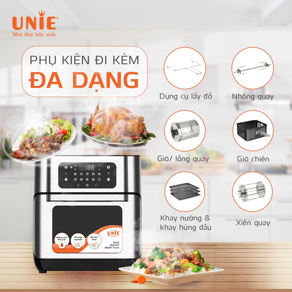 Nồi chiên không dầu UNIE UE-1000 và Kalite Q10 Kalite Q12 Kalite KL-1200 (Kalite tặng găng tay và chổi phết dầu ăn)