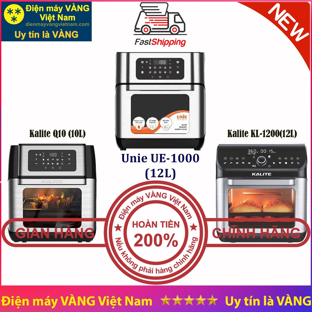 Giới thiệu Nồi chiên không dầu UNIE UE-1000 và Kalite Q10 Kalite Q12 Kalite KL-1200 (Kalite tặng găng tay và chổi phết dầu ăn)