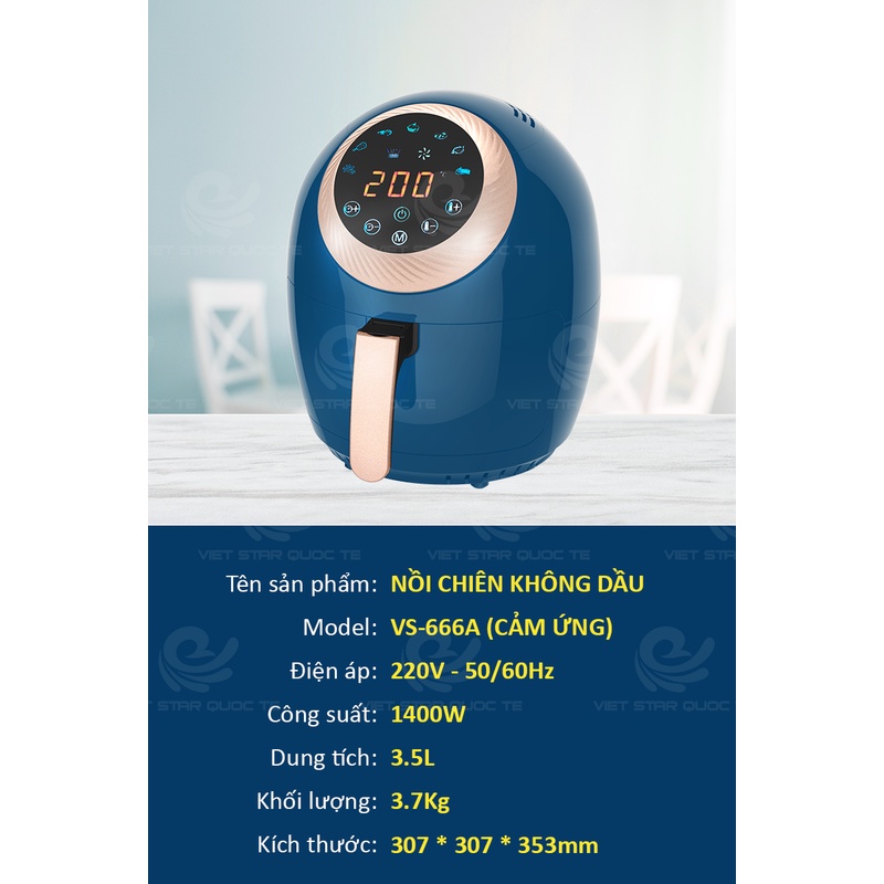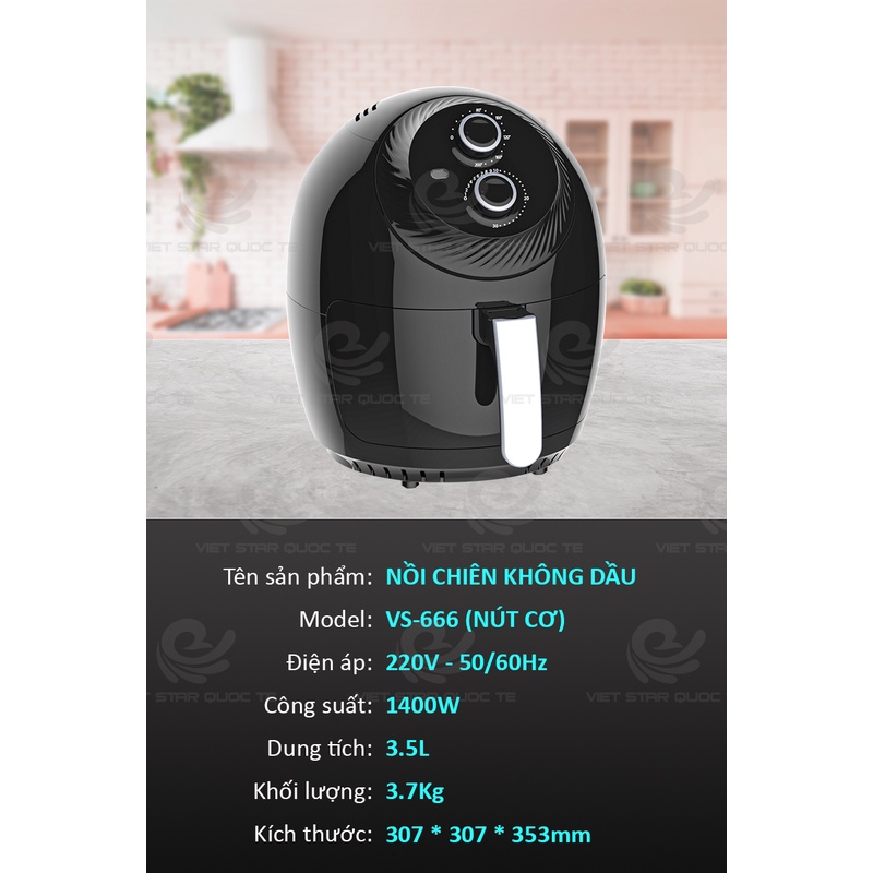 Nồi chiên không dầu VIỆT STAR QUỐC TẾ VS-666A, Dung tích 3.5L, Công suất 1400W, Bảo hành 12 tháng