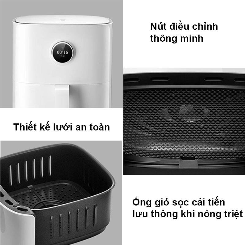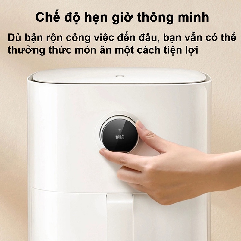 =>>> Khả năng kết nối app, hẹn giờ Bên cạnh đó, nồi chiên không khí Mijia 3.5L còn có khả năng hẹn giờ nấu 24 giờ và điều khiển bằng giọng nói thông qua XiaoAI. Sản phẩm cũng hỗ trợ kết nối app Mijia để mở khóa hơn 50 công thức nấu ăn khác nhau