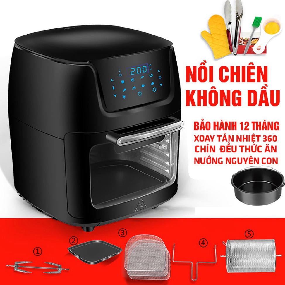 [Mã ELHADEV giảm 4% đơn 300K] Nồi chiên không dầu xoay tự động, dung tích 12L, công suất 1800W, thiết kế sang trọng