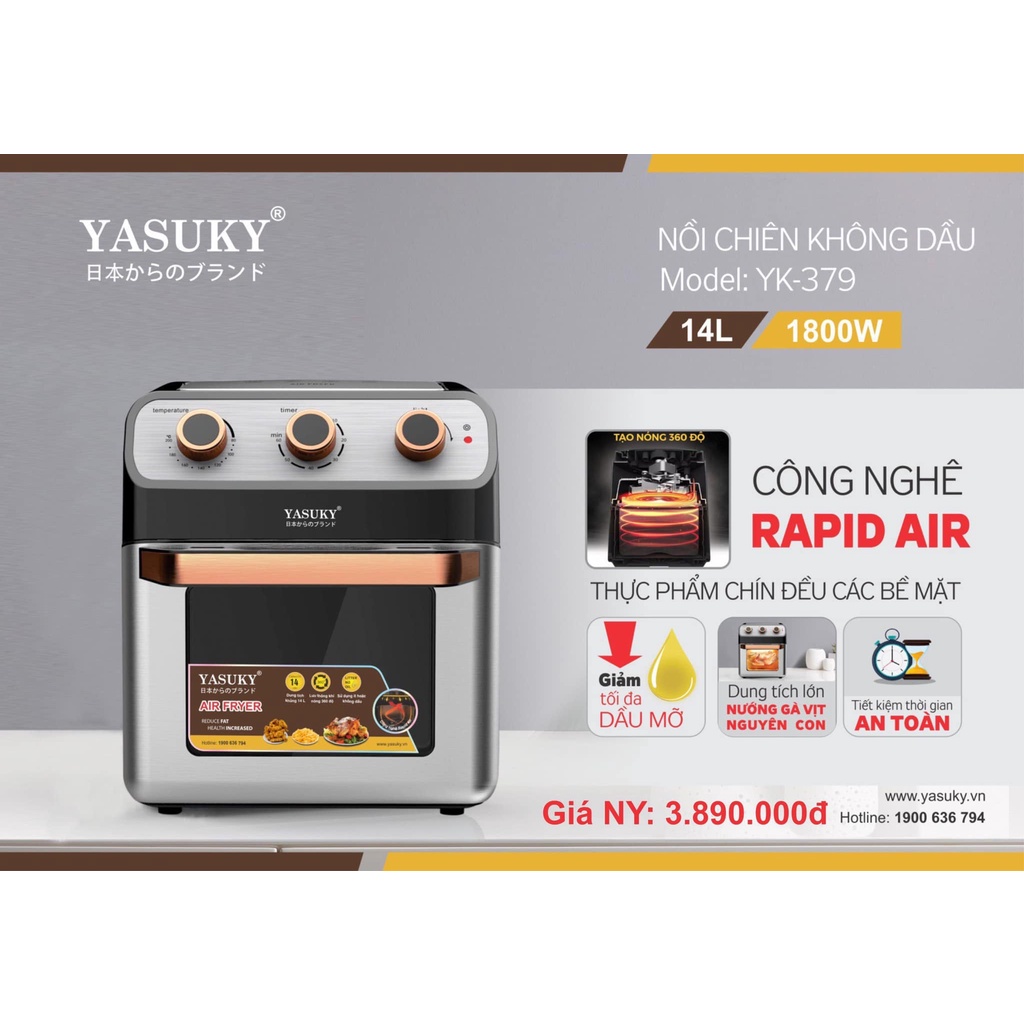 Nồi chiên không dầu Yasuky YK-379 Dung tích 14LNhà sản xuất: Yasuky Công nghệ Nhật bản