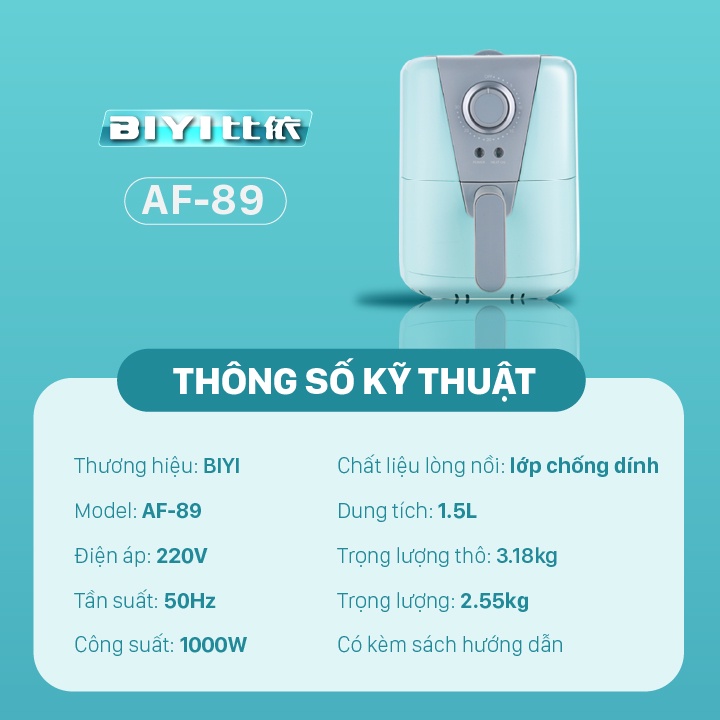Nồi chiên ko dầu BIYI AF-89 1000W - Có phủ lớp chống dính - Bảo hành 12 tháng