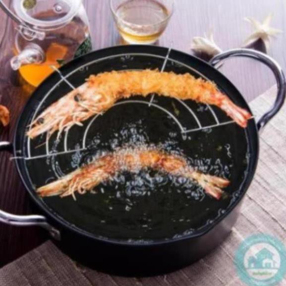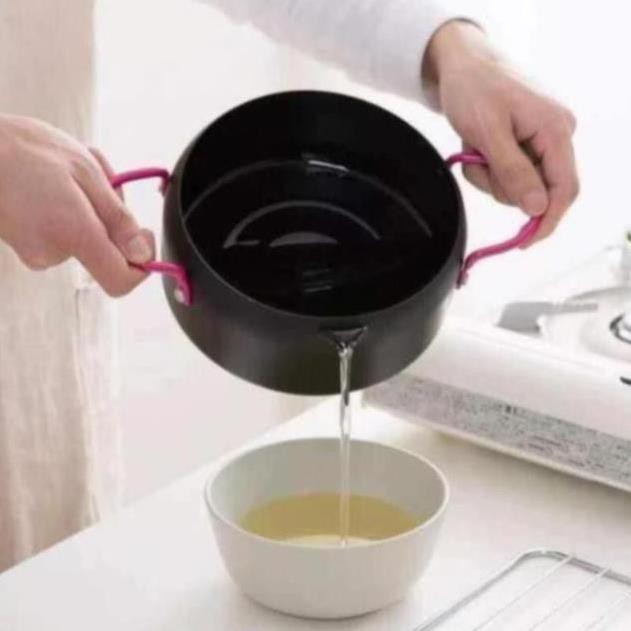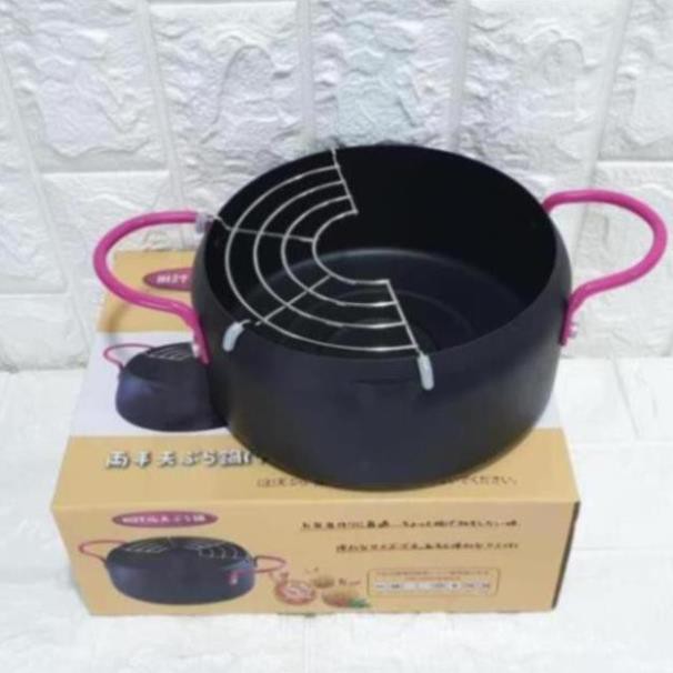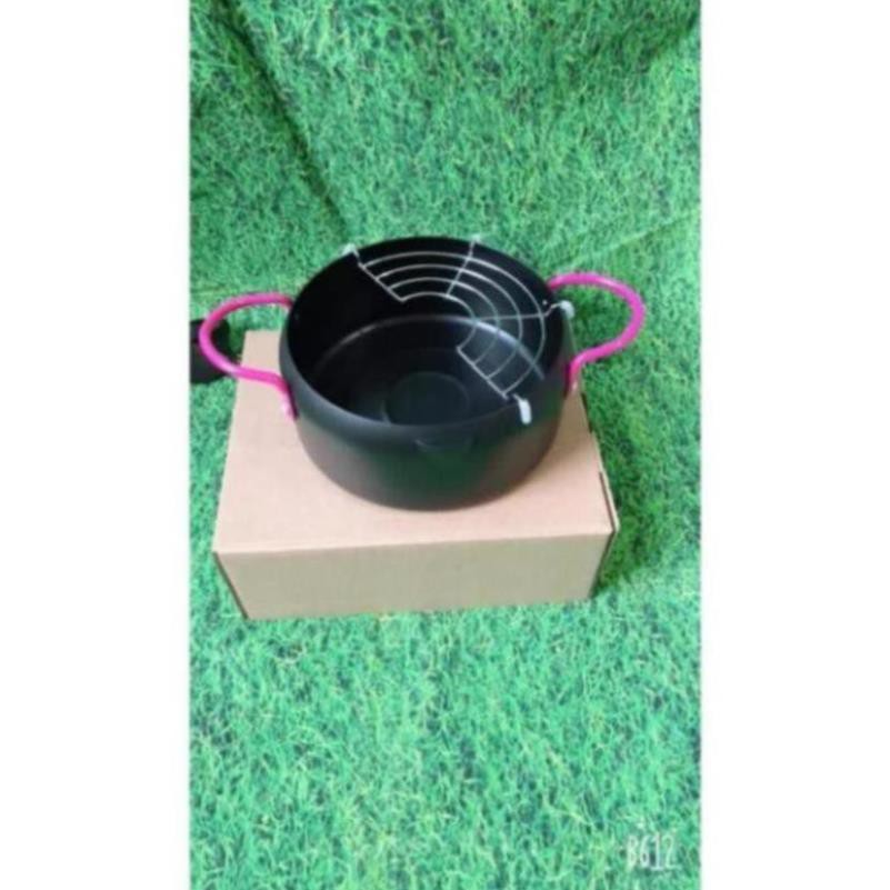 Nồi chiên xuất nhật: dày dặn, chống dính, k bị tốn dầu, chống bắn dầu mỡ , kèm thêm vỉ gác mỡ.