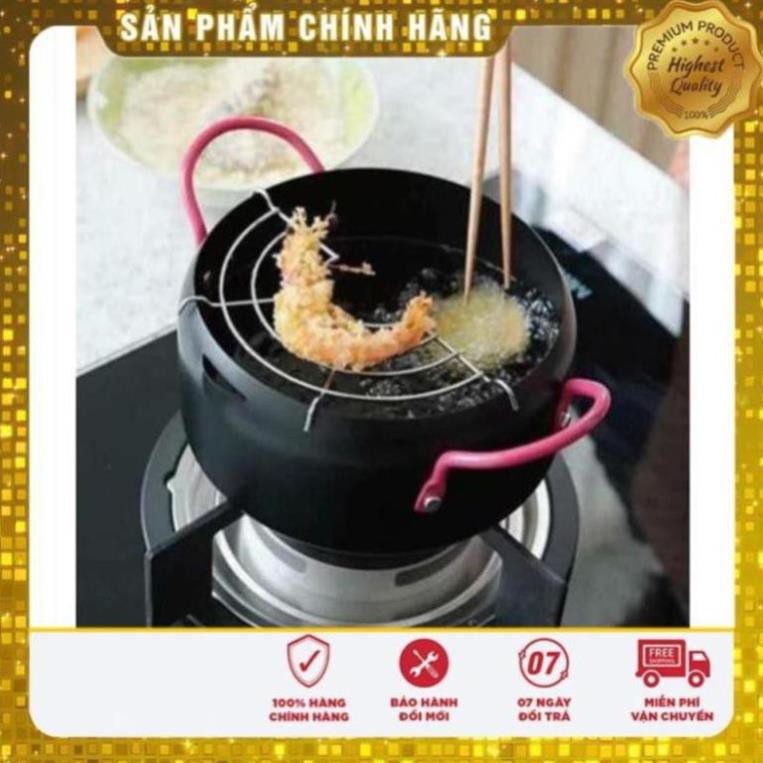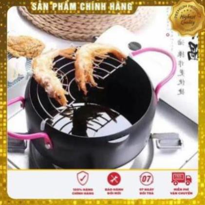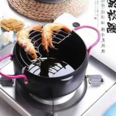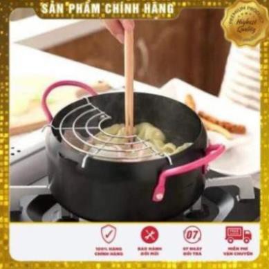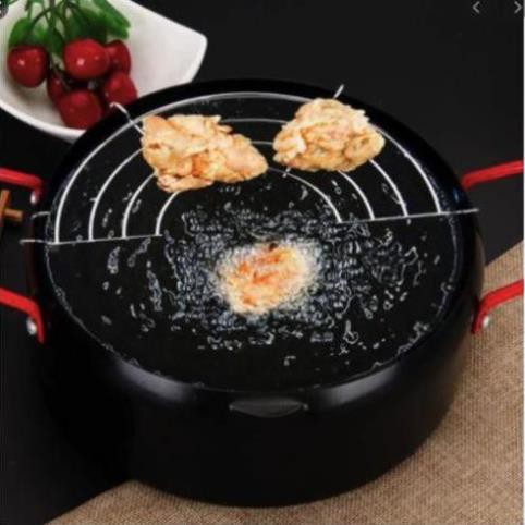 Nồi chiên xuất nhật: dày dặn, chống dính, k bị tốn dầu, chống bắn dầu mỡ , kèm thêm vỉ gác mỡ.
