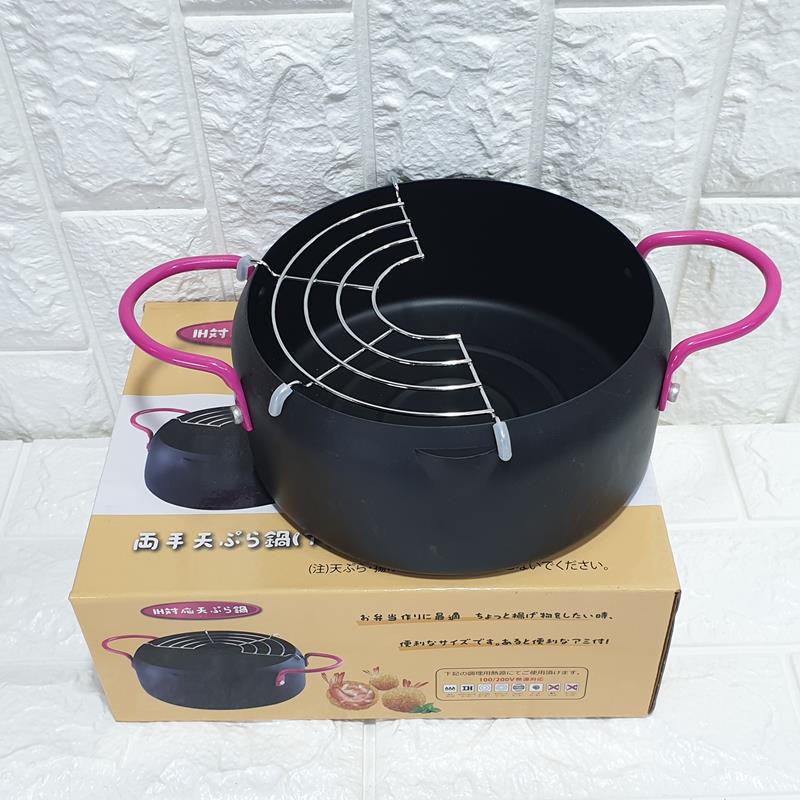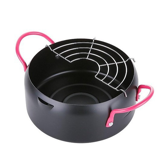 Nồi chiên xuất nhật: dày dặn, chống dính, k bị tốn dầu, chống bắn dầu mỡ , kèm thêm vỉ gác mỡ.