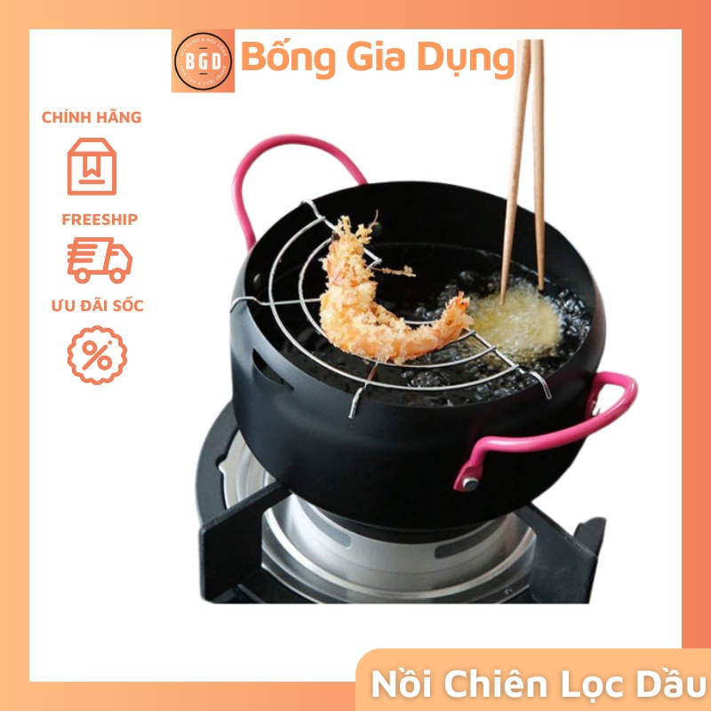 Nồi Chiên Dầu,Nồi Chiên Lọc Dầu Kèm Khay Hứng Dầu Cao Cấp.– Chất liệu: sắt, crom cao cấp. An toàn tuyệt đối khi sử dụng.