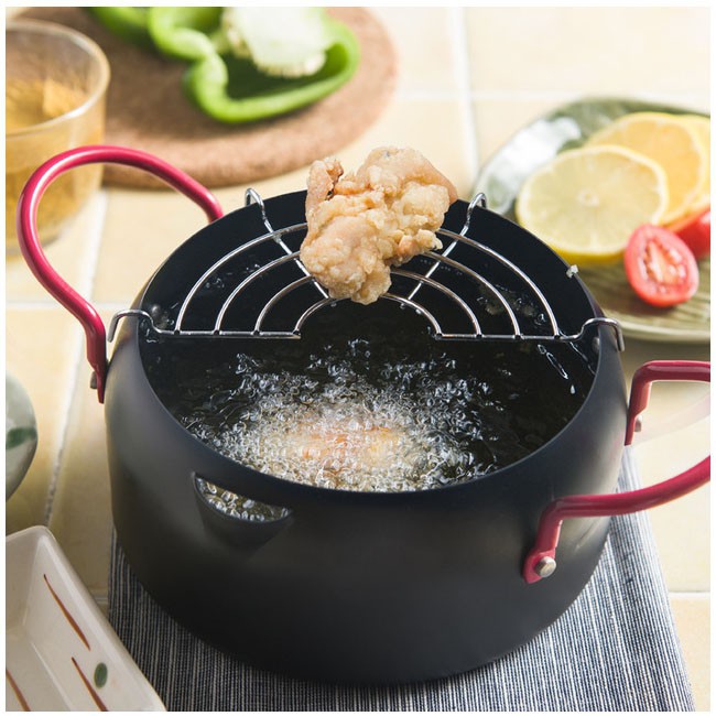 Nồi với lớp phủ chống dính thức ăn, dễ vệ sinh. Tiện dùng chiên Tempura, các món chiên bột… Kèm lưới để thức ăn làm ráo dầu tiện dụng.