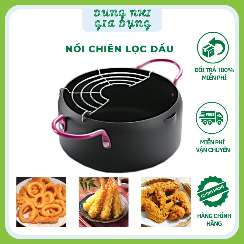 Giới thiệu Nồi Chiên Lọc Dầu Tặng Kèm Vỉ Gác Chảo Nồi Chiên Rán Sâu Lòng Đường Kính 18cm Hàng Xuất Nhật