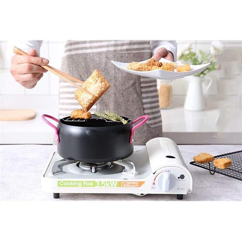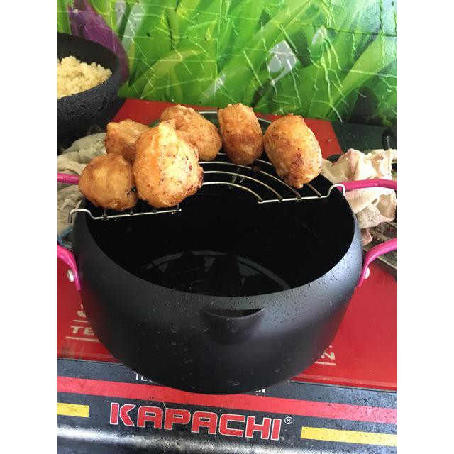 Bạn đang kiếm tìm 1 chiếc chảo sâu lòng, bé bé xinh xinh để trổ tài các món chiên ngập dầu như: gà rán KFC, khoai tây chiên… Với các loại chảo size to để rán ngập các món ăn thường rất tốn dầu và gây lãng phí. Nay với Nồi chiên lọc dầu kèm khay hứng cao cấp này Bạn không phải băn khoăn điều đó nữa.Nồi chiên lọc dầu kèm khay hứng được thiết kế phù hợp với mọi loại bếp. Bạn có thể sử dụng nồi trên mọi loại bếp như bếp gas, bếp từ, bếp hồng ngoại. Chất liệu bền, nhẹ cũng là những ưu điểm không thể bỏ qua của chiếc nồi đa năng này.