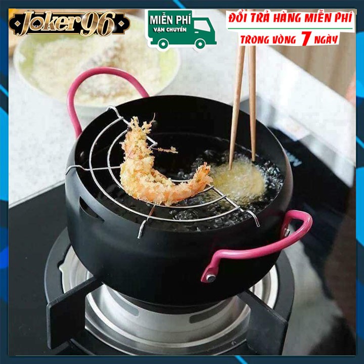 Nồi với lớp phủ chống dính thức ăn, dễ vệ sinh. Tiện dùng chiên Tempura, các món chiên bột… Kèm lưới để thức ăn làm ráo dầu tiện dụng.