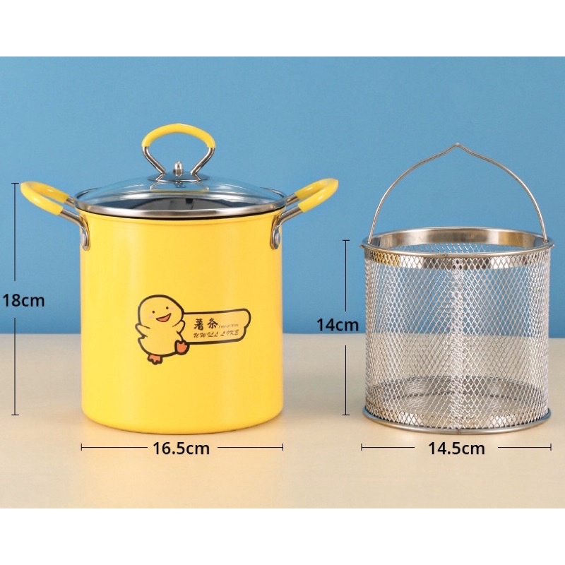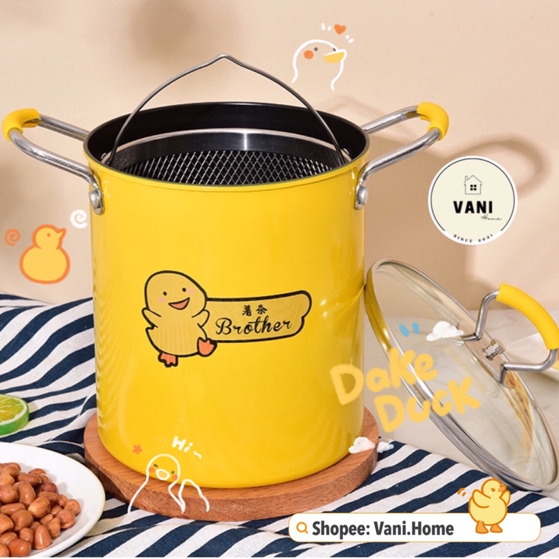Nhà cửa & Đời sống > Dụng cụ nhà bếp > Nồi || Nồi chiên ngập dầu con vịt vàng kèm rổ lọc dầu siêu cute (Loại 1) - Nồi chiên gà rán, khoai tây hình con vịt vàng 18cmCòn hàng