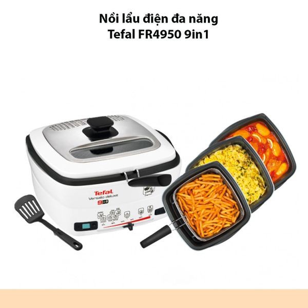 Nồi chiên ngập dầu đa năng Tefal FR4950 Multi Cooker 9 chức năng nấuĐặc Nồi lẩu và chiên ngập dầu đa năng Tefal FR4950: