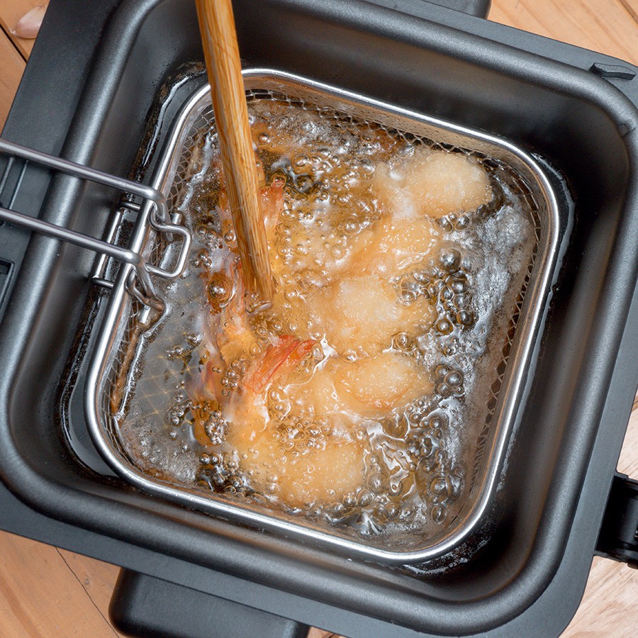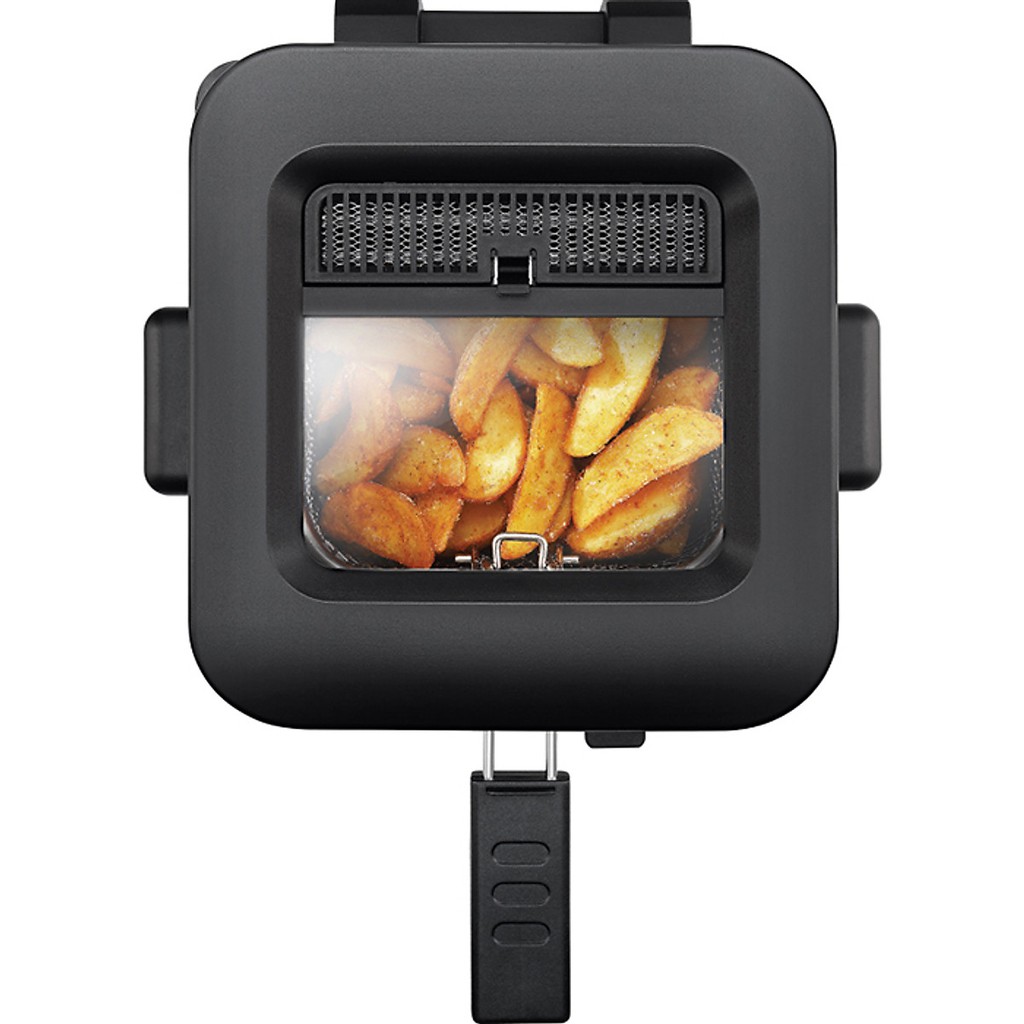 * Bạn có thể nâng giỏ chiên lên và làm ráo dầu nhờ vào móc tích hợp trong khi mở nắp.